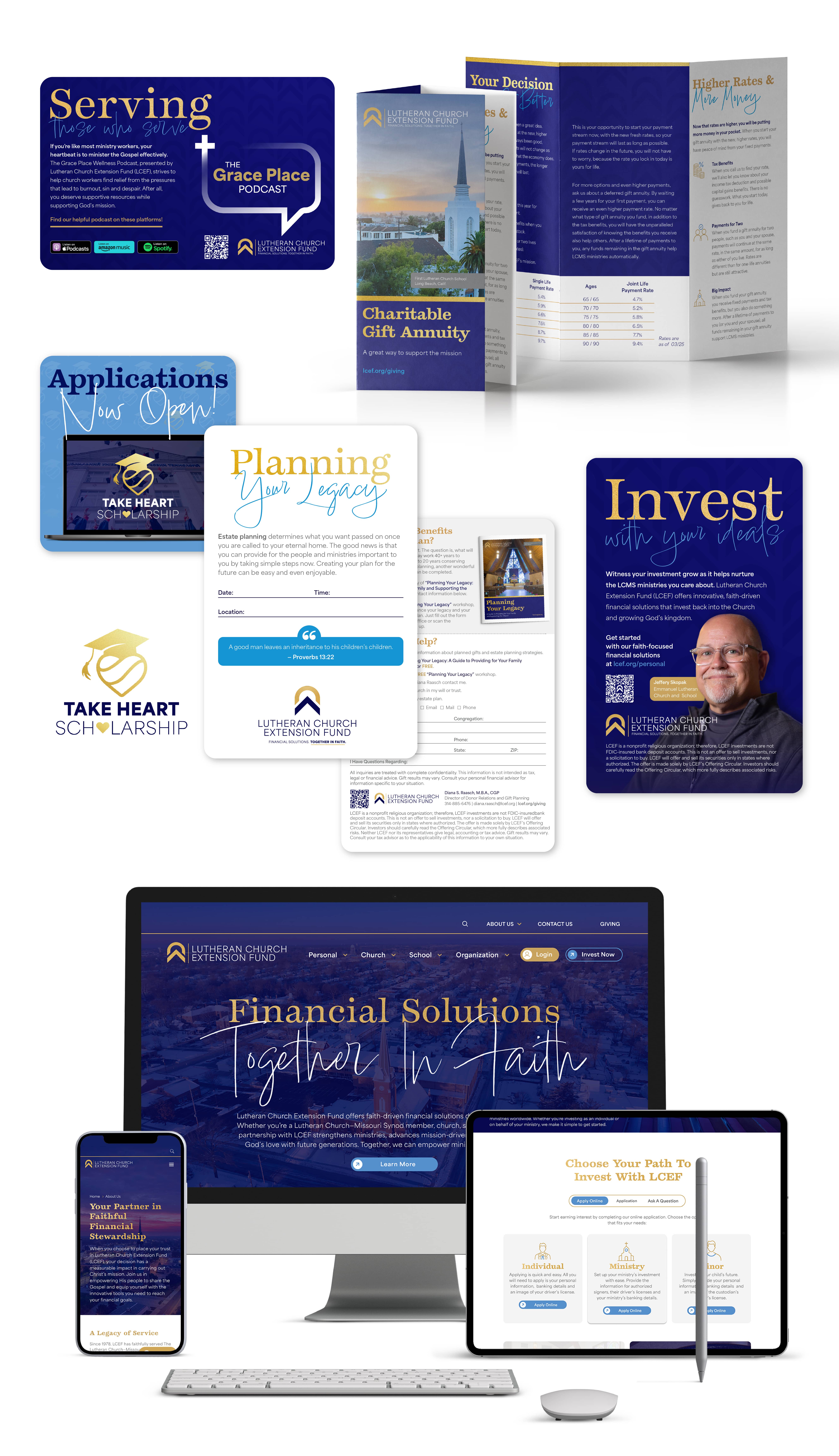 Lutheran Church Extension Fund (LCEF) provides banking, investment, and loan services and guidance to The Lutheran Church—Missouri Synod (LCMS) ministries, schools, nonprofit organizations, church workers and members. To adapt to evolving customer needs and category offerings, the LCEF brand needed to evolve. That’s why a key component of the organization’s five-year vision included a full rebranding initiative to refine its brand perception across LCMS.