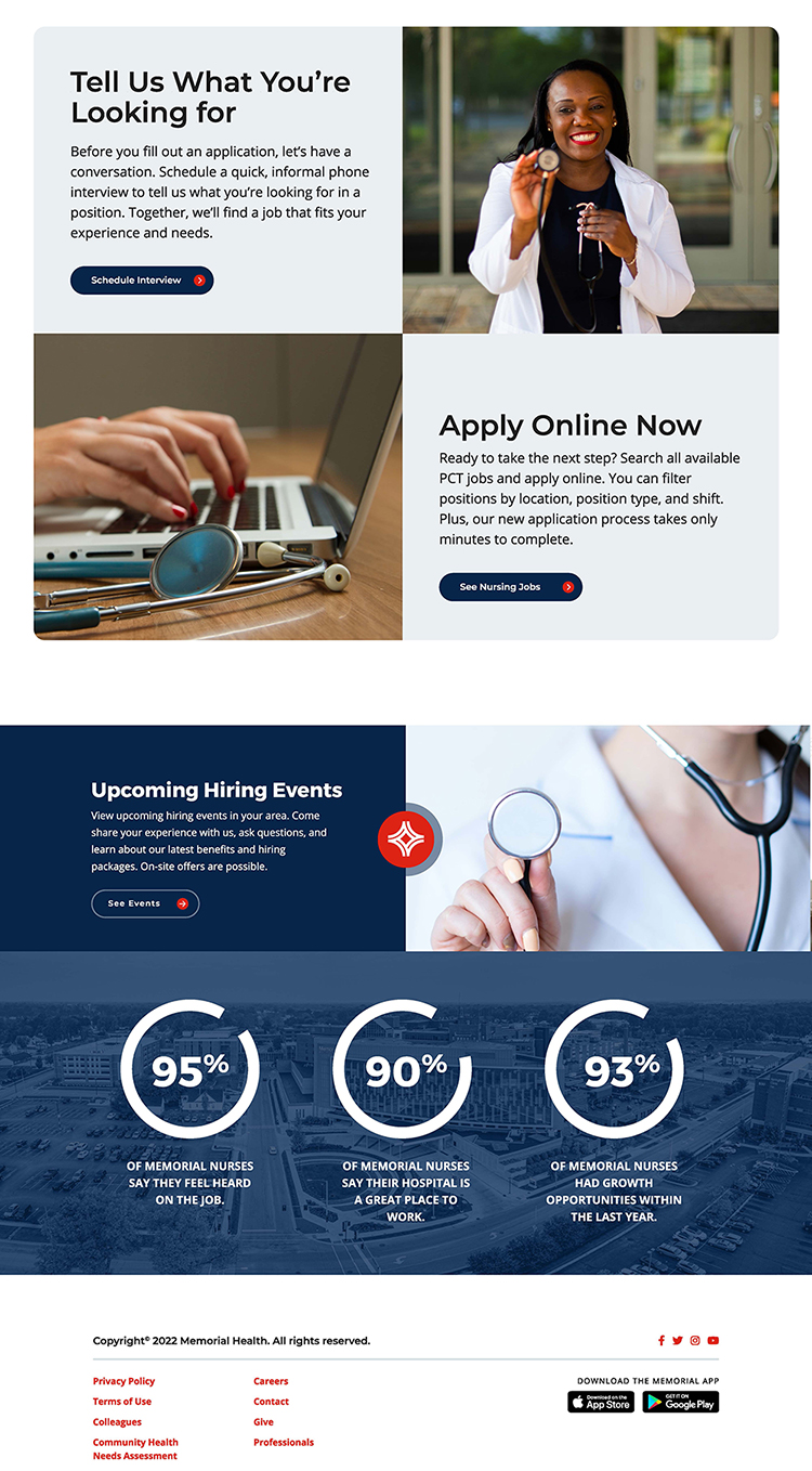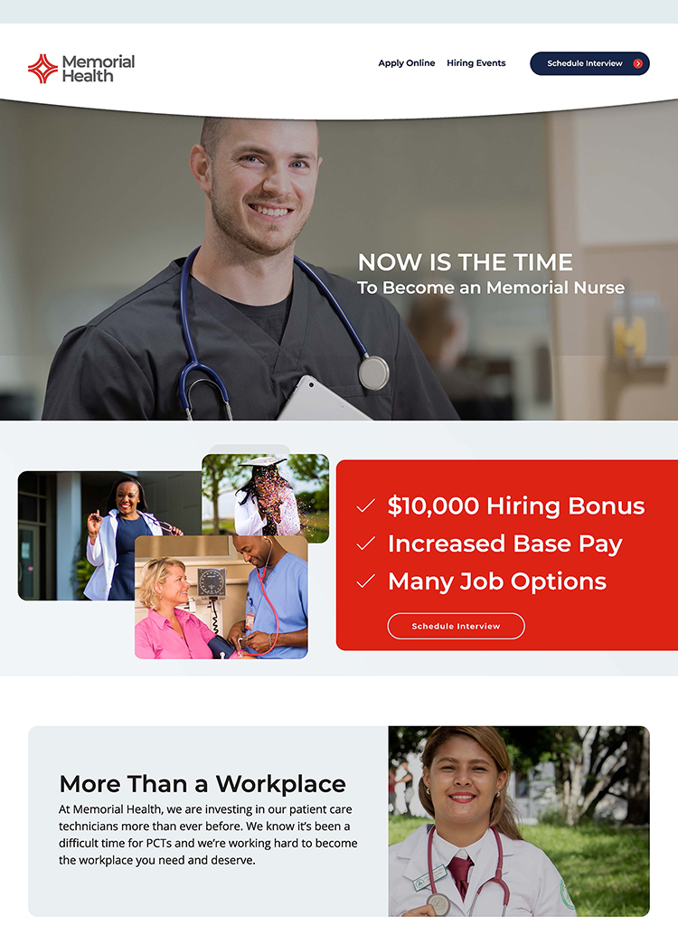 Like many hospitals nationwide, Memorial Health faced critical staffing challenges brought on by the COVID-19 pandemic. To help alleviate their reliance on agency staff (i.e., traveler nurses) in key clinical areas, Memorial enlisted Jump to help fill hard-to-staff positions.​